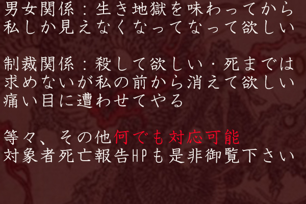貴方様の希望、闇、本音、何でも聞かせて下さい。そのほうが魔術の効果もUPですから・・・→問い合わせをしてみる