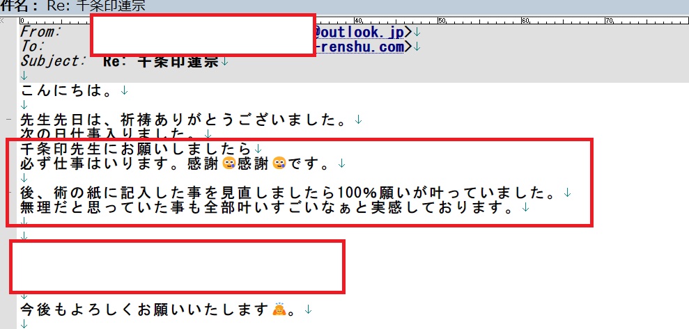 先生は初めてのメールのやり取りの時から「彼は刺されてろくでもない死に方をする」と4.5回仰ってきました。事故でも病気でもなく、本当に刺されて死んだんです!先生、ぜひ一般で載せて下さい。私の名前は伏せて…対象者が分かってもいい、むしろこいつは私に呪い殺されたのだと!諦めなくてよかった!みなさん、これが千条印蓮宗の力です!