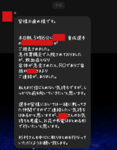 先生は私を助けてくださった。あのときは死ぬ一歩手前でした。でも先生が手を差し伸べてくれた。自分は一生ついていきます。先生の毎日のようなアドバイスも糧に生きています!