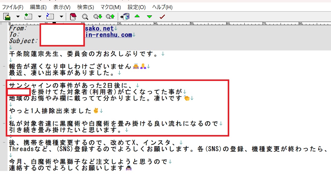 池袋サンシャインの刺殺事件で生まれた血の魔術。現場で怨念・無念・叫び声をたっぷり吸わせて来ました。死んだ人間が私の術者様の呪いの対象者になっていました。